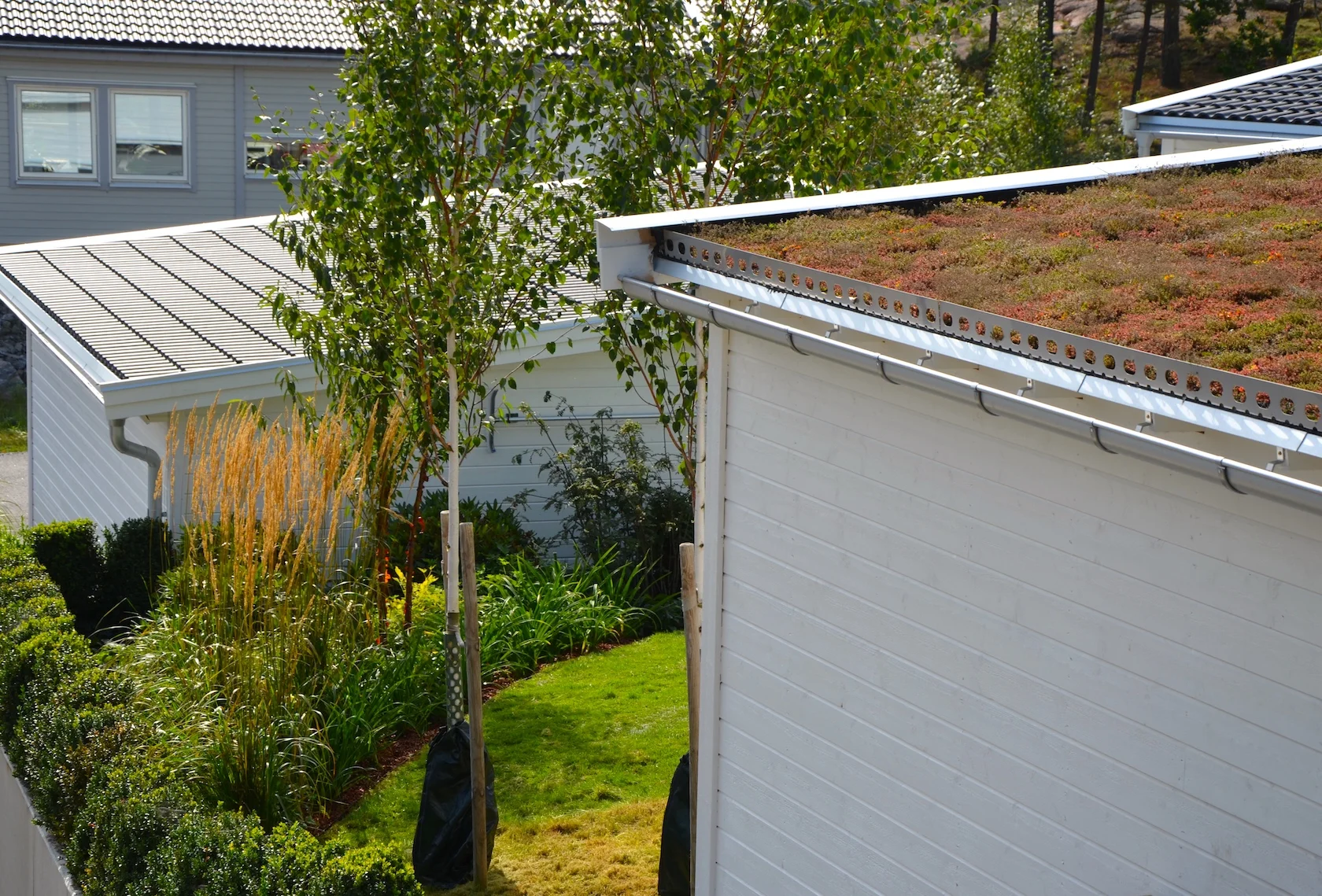 Resultatet har blivit en villaträdgård med naturstråk av sedummatta, kryddträdgård, körsbärslund och några underbara blickfång från husets alla fönster. En trädgård att se ner på likaväl som att uppleva från marken.